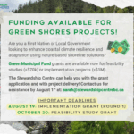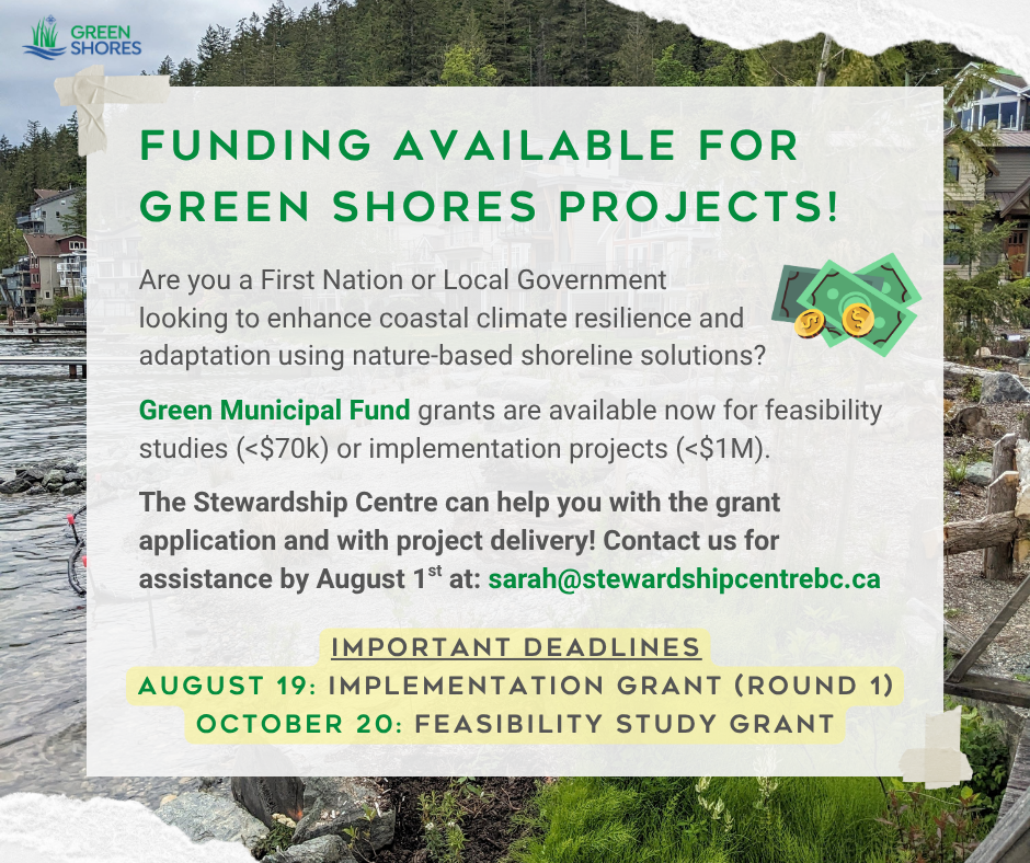 Two Green Municipal Fund grants are now available that can support Green Shores and nature-based coastal resilience projects! Contact us at the Stewardship Centre if you’d like help applying for these grants for your project, and if you’d like help with project delivery!